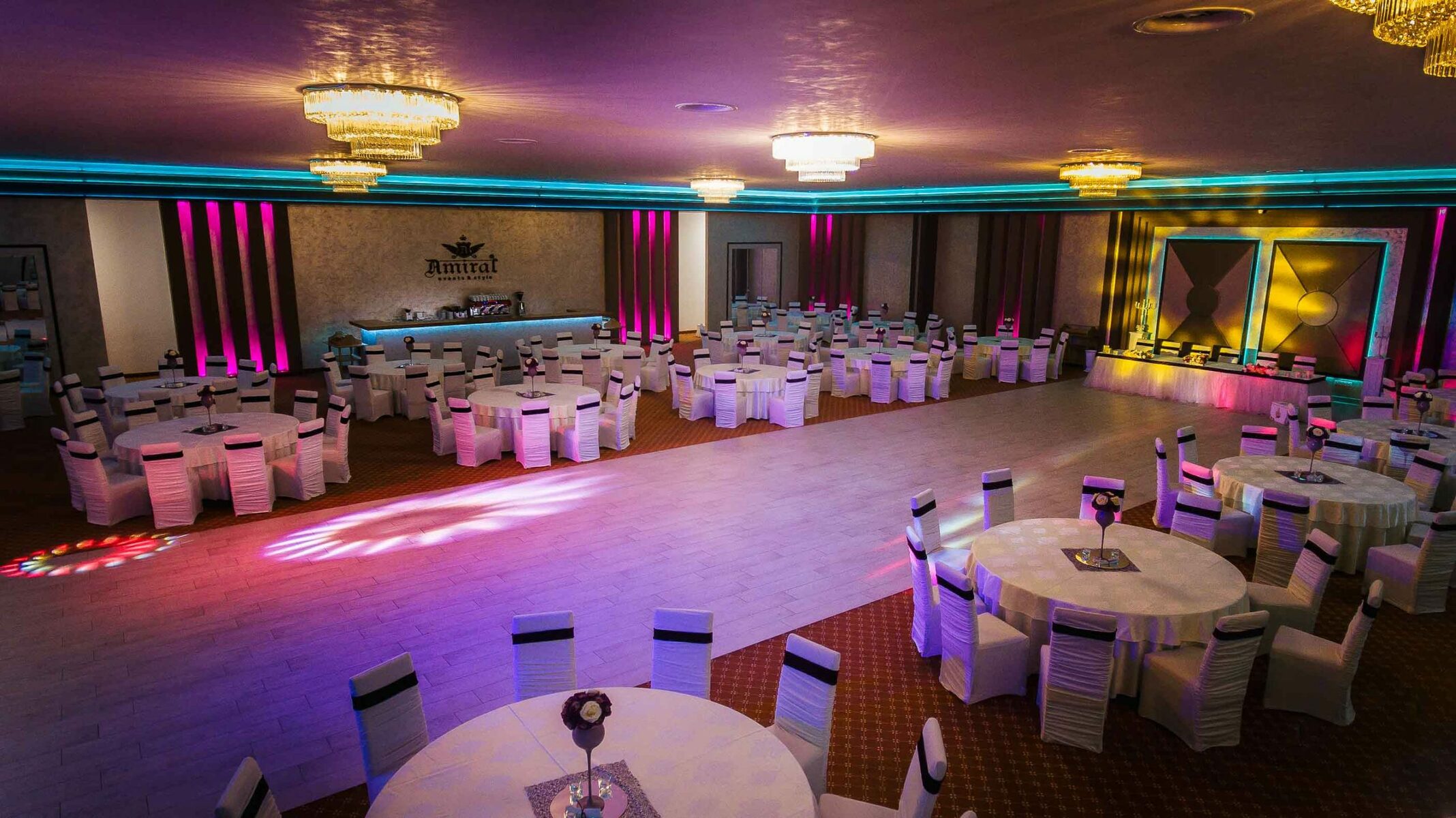 Ai posibilitatea de a alege o sală adaptată numărului tău de invitați. Design open space. Fără stâlpi sau pereți interiori care să împiedice vizibilitatea. Decor personalizabil. Tu îți alegi culorile, tematica și obiectele de decor preferate. Pachet băutură all inclusvie. Ai o varietate de băuturi incluse pe tot parcursul evenimentului. Consultanță de specialitate. Te ghidăm pe tot parcursul organizării evenimentului. Buget optimizat. Economisești alegând un pachet cu preparate și servicii integrate.Servicii oferite