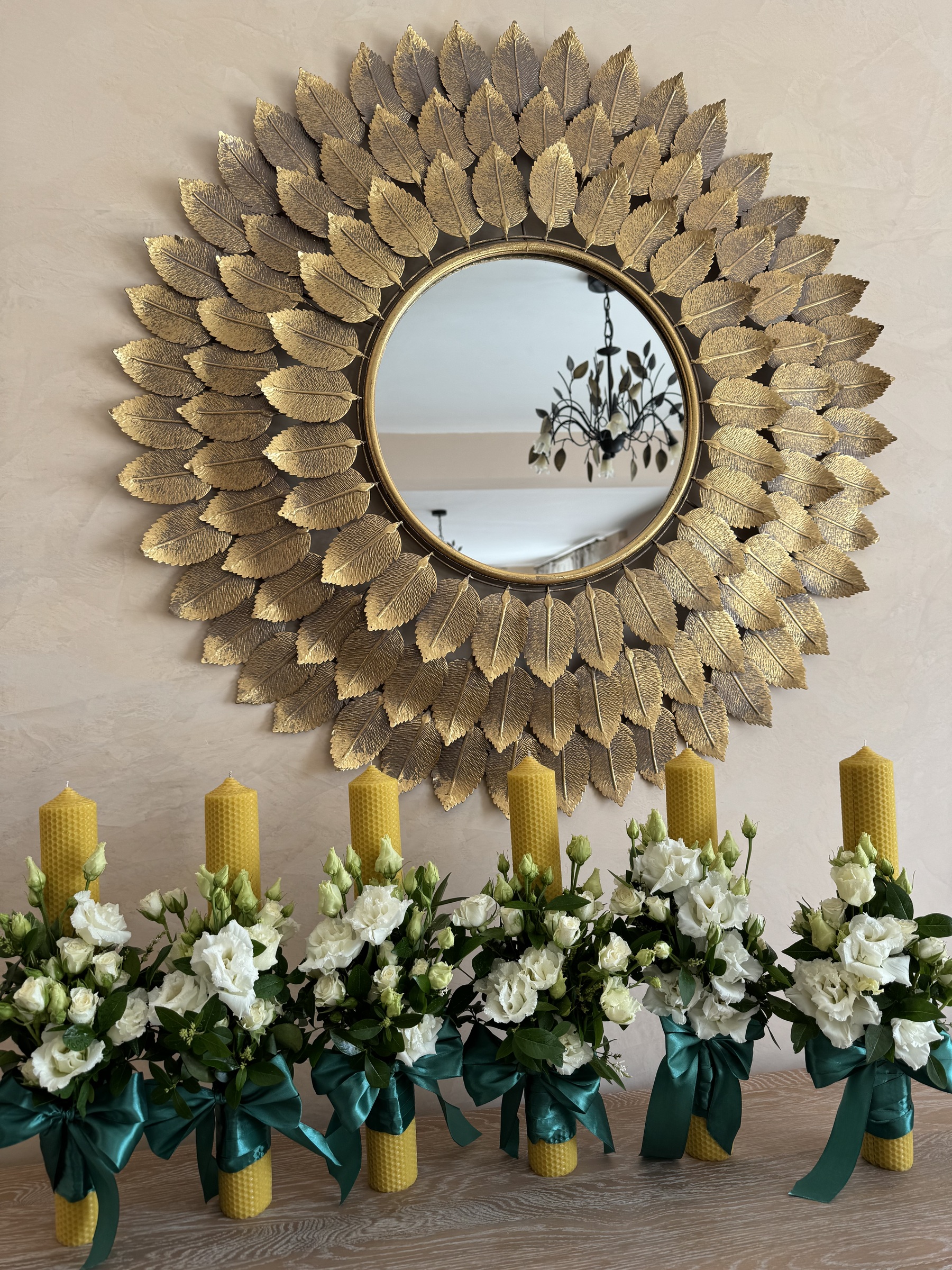 Ne ocupăm de decorul evenimentelor, flori prezidiu, mese invitați, lumânări de cununie/botez, cocarde, buchete de mireasă și alte servicii personalizate