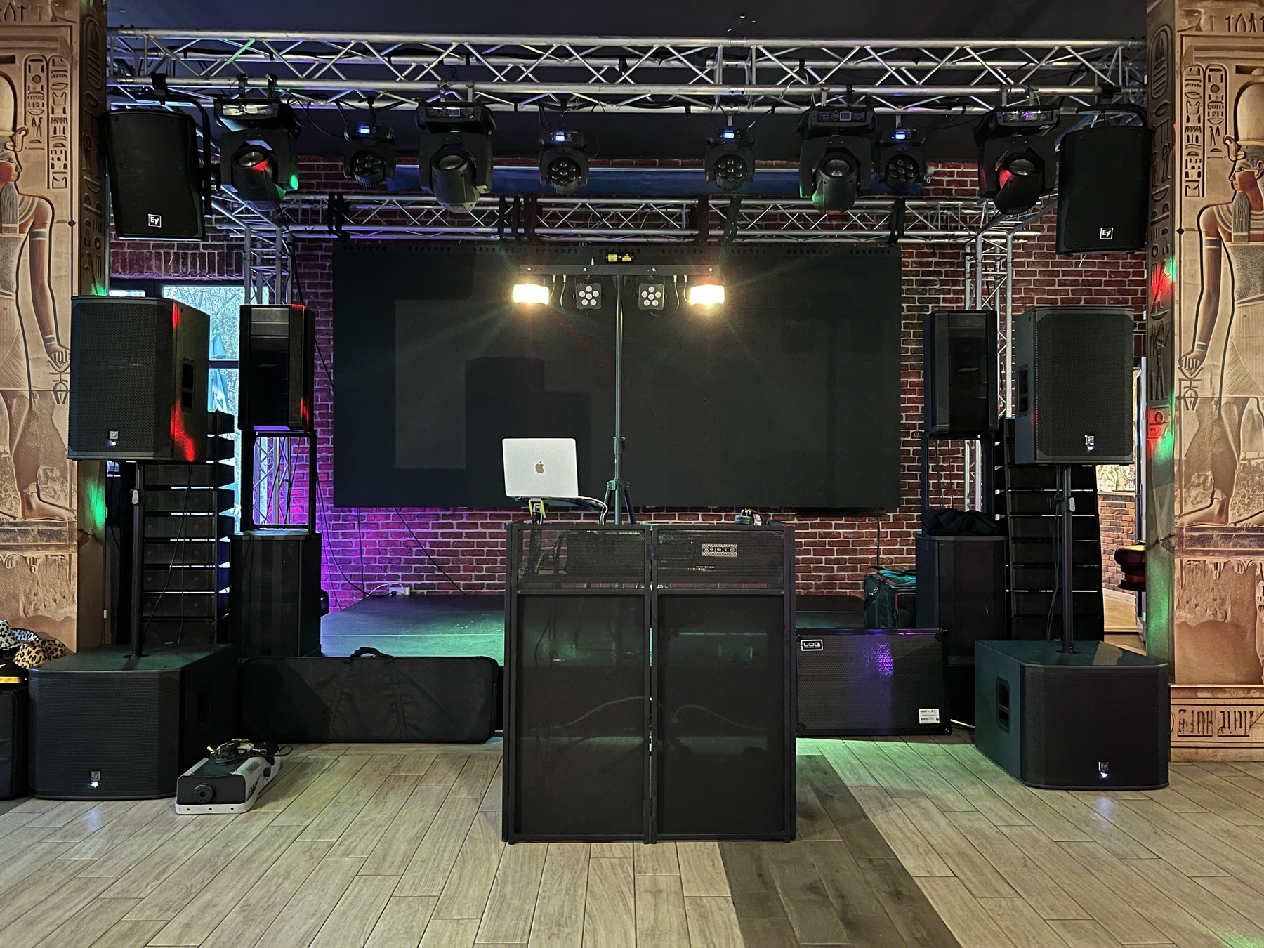 Sonorizare profesională de până la 8000 W RMS este disponibilă pentru evenimente de la 30 la 500 de persoane, inclusiv boxe active și subwoofere de calitate superioară.