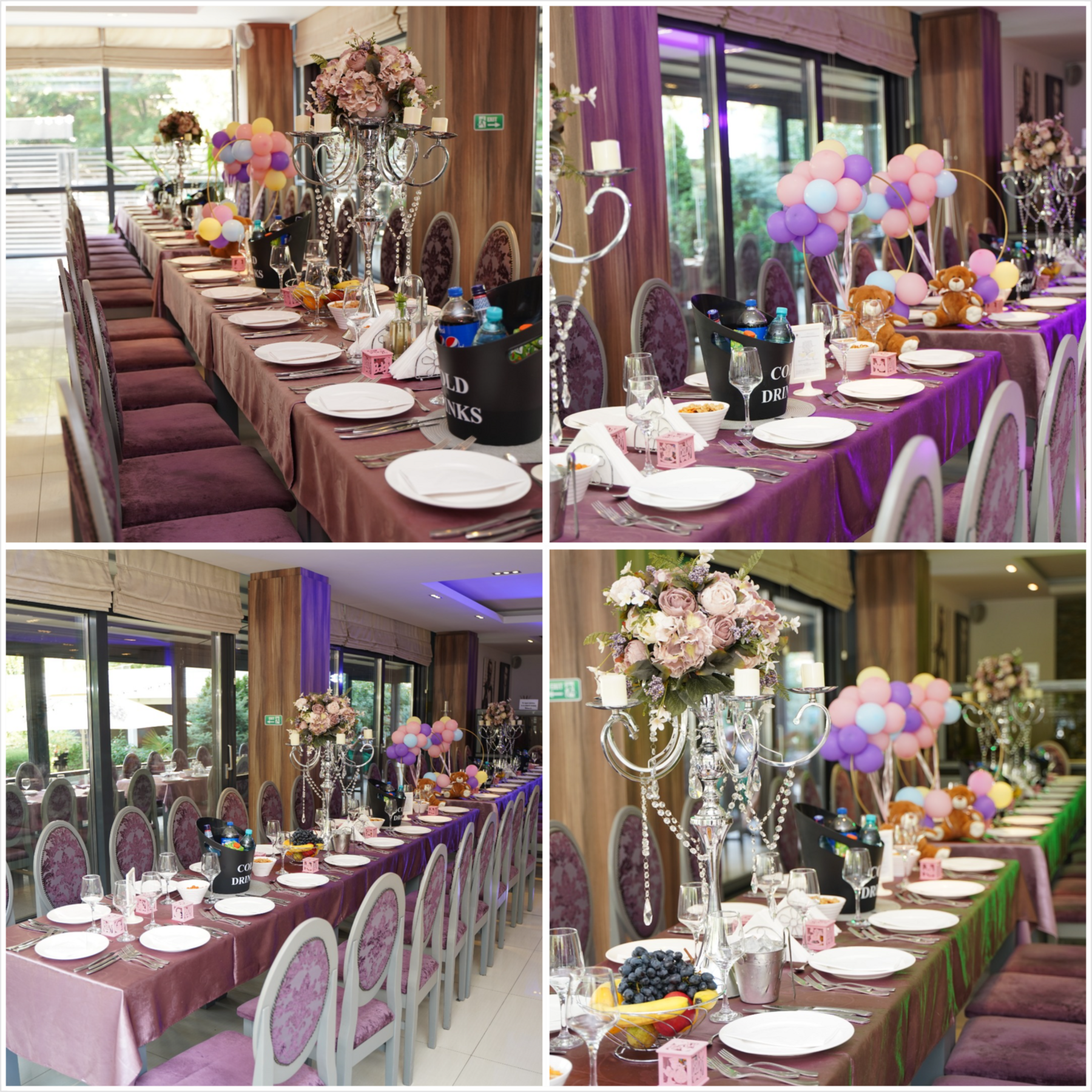 Putem oferi meniuri personalizate, in functie de dorintele fiecarui client. Pachet aranjament festiv salon: Față de masă, șervețel decorativ, aranjament floral pe masă. Pachet primire: Șampanie & pișcoturi, fructe, covor roșu. Tortul mirilor.