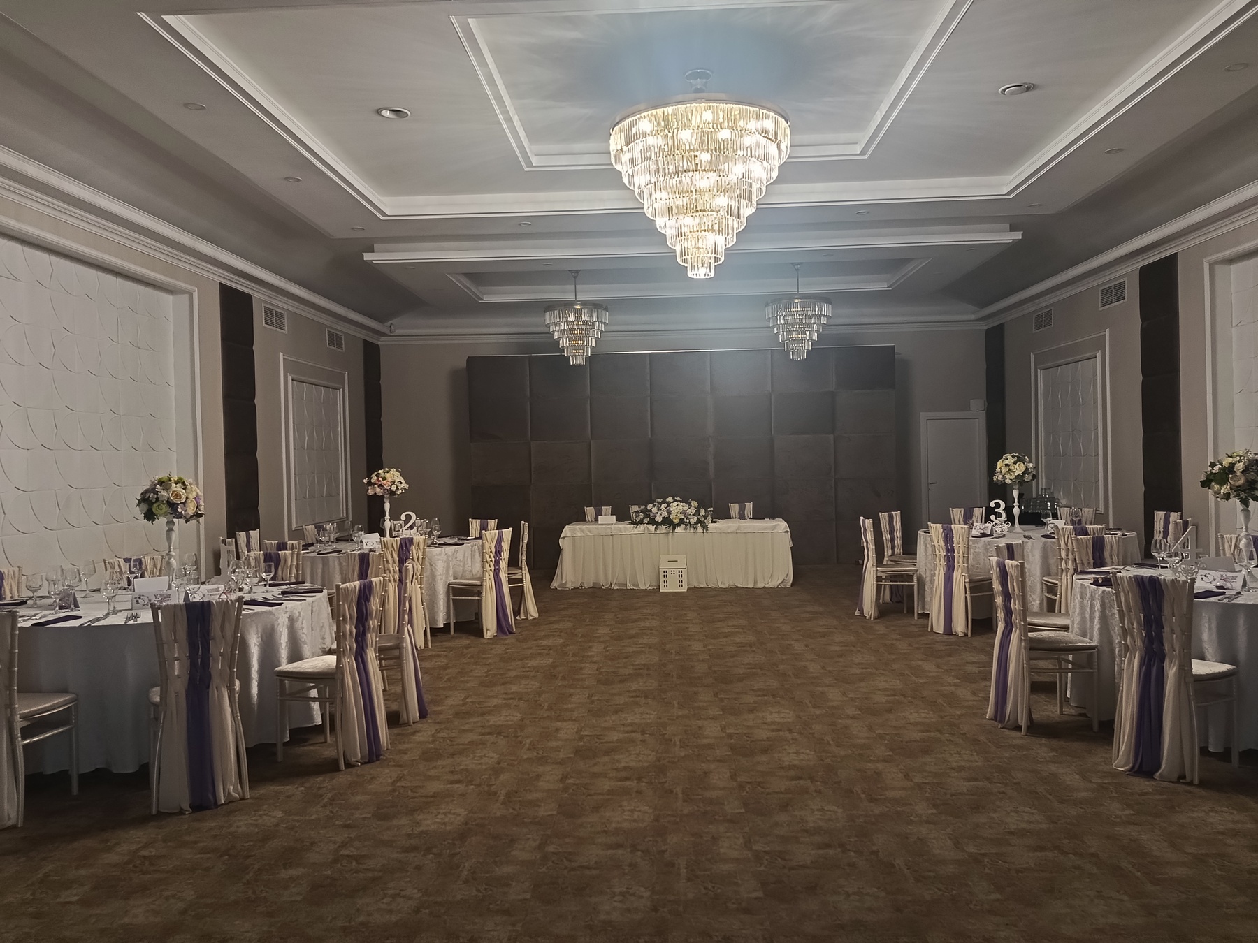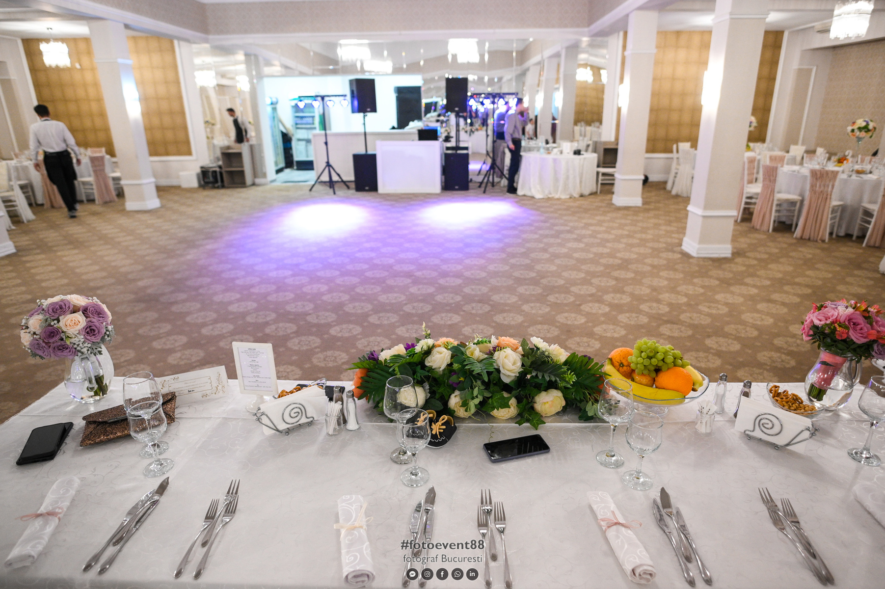 In prețul meniului ales de dumneavoastră, Celebration Ballroom Restaurant & Events vă mai ofera: Covor rosu | Stâlpișori decorativi, Mese Cocktail, Fete de masă si servete – toate din brocart, Aranjamente de scaune – esarfe in 4 variante de culori, Aranjamente florale – 15 modele la alegere, din catalog pe fiecare masă, plus masă de prezidiu, suporturi de aranjamente florale, Numere de masă | Meniuri tiparite pe fiecare masă, Căsuță de dar | Suport pentru lumanari; Pachet welcome: Șampanie servită la primirea oaspeților și la tort; Pachet servire: Mix de covrigei sărați și alune, Aranjament de fructe pe masă;