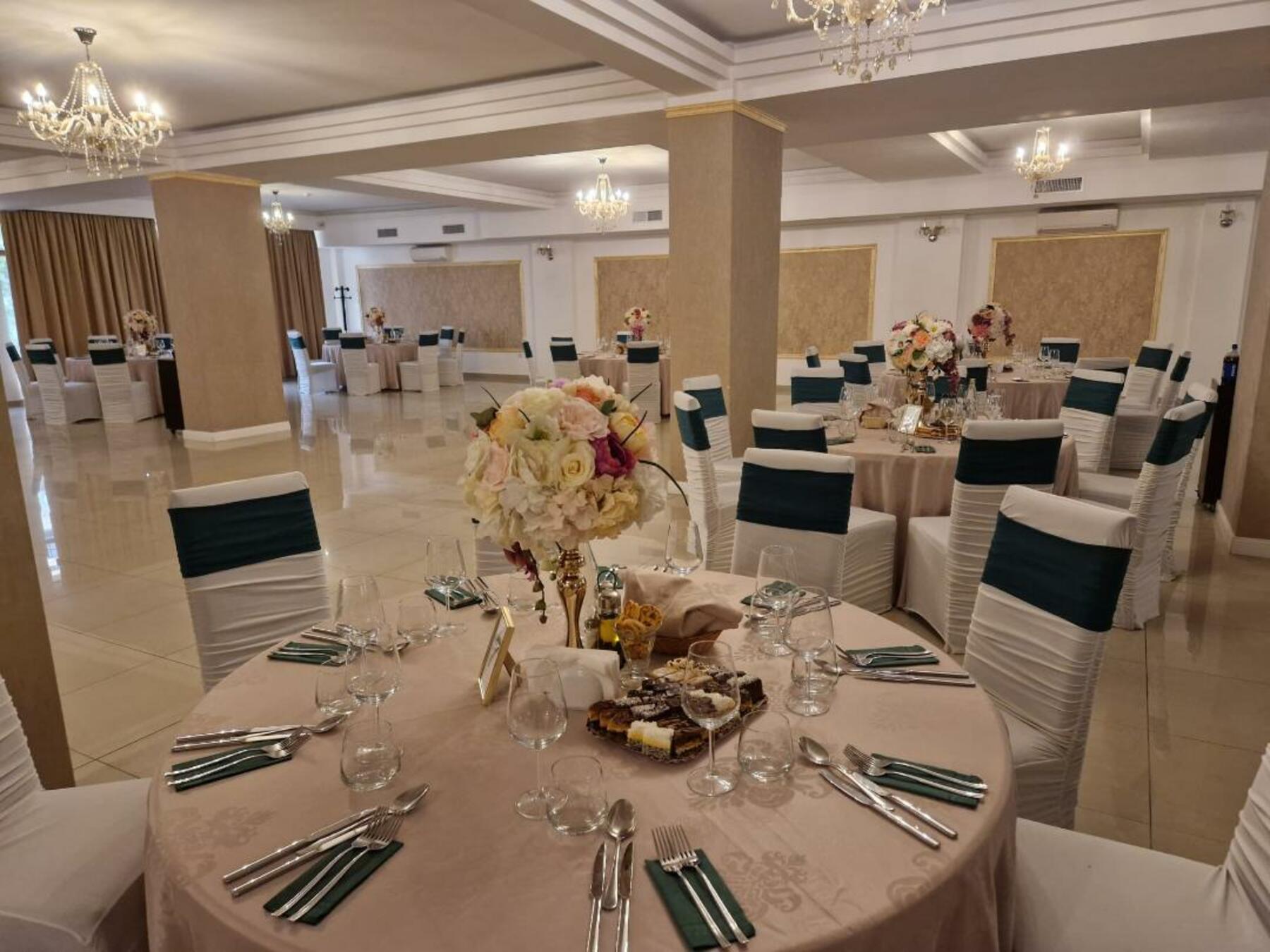 Sala mare poate găzdui până la 220 de persoane, iar sala mică până la 70 de persoane.Servicii oferite