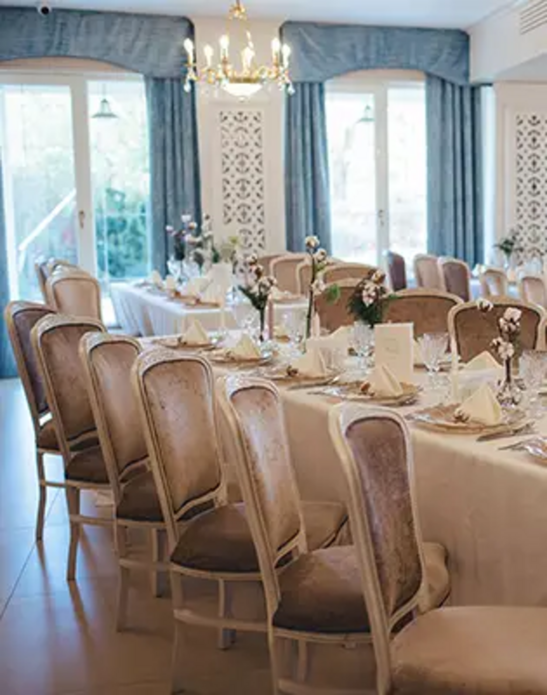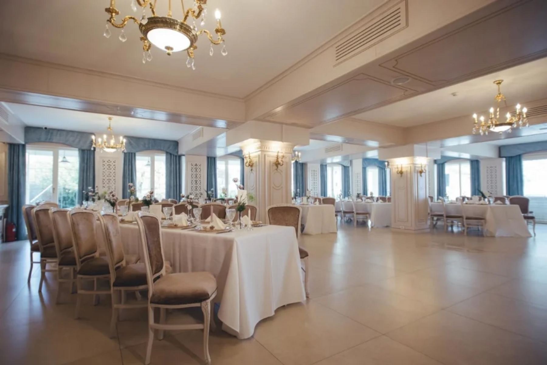 Salon elegant ideal pentru evenimente mari precum nunți, botezuri, conferințe și team building-uri. Atmosfera rafinată și spațiul generos permit organizarea evenimentelor de mare amploare.