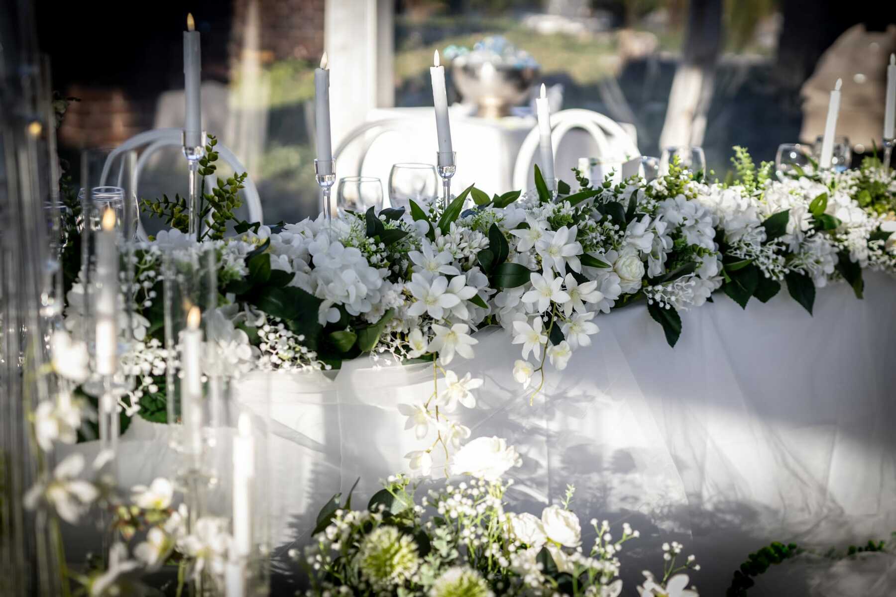Aranjamentele de masă deosebite pornesc de la 75–90 € / masă, în funcție de design, dimensiunea aranjamentului și elementele decorative incluse (suporturi, lumânări, structuri speciale).