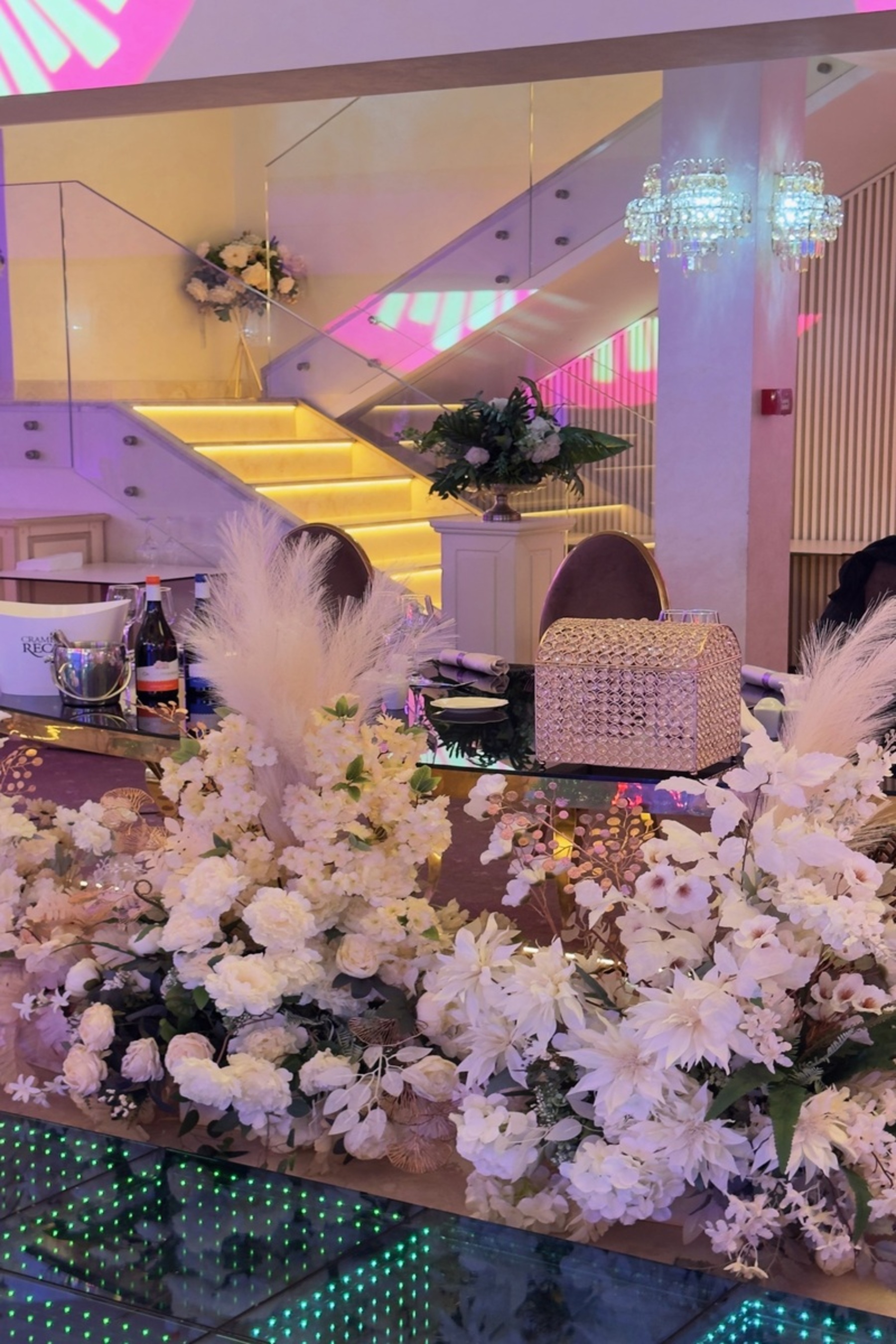 Aranjament sala: aranjamente florale. Numere de masa. Mise – en – place. Scaune tapitate. Fete de masa (mai multe variante). Welcome Porn Star Martini, Prosecco. Covor rosu la intampinarea oaspetilor. Torturi personalizate. Event planner pe toata durata evenimentului. Candy bar CADOU. Lumini arhitecturale ambientale. Fum greu si artificii interior. Bar mobil personalizat by Le Blanc. Degustare meniu (pentru 2 persoane). Ring de dans 3D infinity, Ecran led (se poate configura ca si fasii sau ca un ecran intreg de diferite marimi 3×2, 4×3). Moving heads wash, Fum greu cu artificii, Sistem de sonorizare propriu, Schela lumini scena, Cheese bar personalizat (asortimente de branzeturi frantuzesti insotite de fructe exotice sau sclupturi din fructe), Floating bufet, Aranjamente florale personalizate designer floral (tematici), Show cocktail bar, Valet parking, Serviciul hostess, Cabina foto/360, Inghetata artizanala by LE BLANC, Posibilitate cazare Le Blanc Hotel.