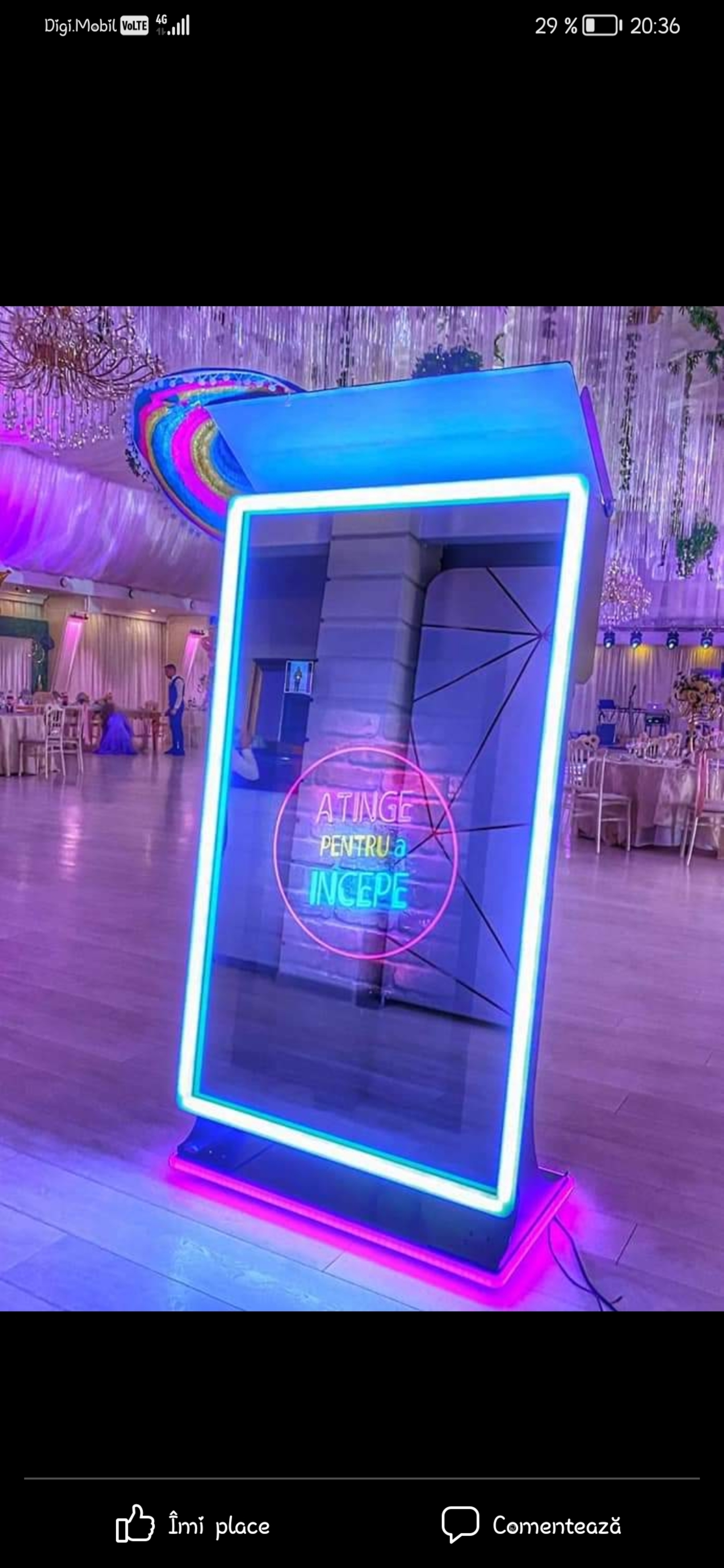 Detinem Oglinda Magica din gama premium luxury si VideoBooth 360. De anul acesta am schimbat cu totul echipamentele tehnologice si ne-am reinventat alegand numai componente de top a caror tehnologie a aparut pe piata acum 6 luni.
