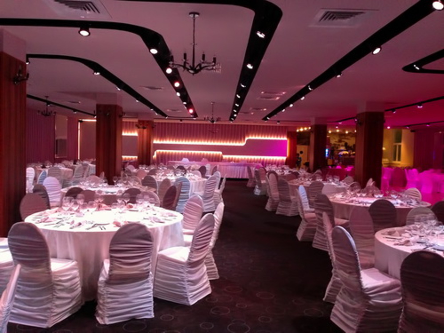 Anul 2013 a adus pentru Dvs. REDAL EVENTS, un salon de evenimente modern, o echipa de profesionisti si bucatari renumiti – pentru evenimente la cheie, la preturi extraordinare si cu solutii pentru cei mai pretentiosi clienti. Va asteptam cu un sistem de lumini special. Sala noastra se poate colora practic in orice fel de culoare, de la lumina clasica pana la cele mai la moda culori: roz, albastru marin etc. Pentru cei mici avem pregatit un loc de joaca dotat dupa cerintele in materie. Locul de joaca se afla in cadrul salonului, copii putand fi astfel usor supravegheati. Sala este modulara!! Putem gazdui evenimente incepand de la 80 de persoane pana la 280 de persoane, pentru aceasta am format o echipa perfectionista care sa fie atenta la toate detaliile si care sa puna la punct orice aspect al evenimentului pe care il organizati. Salonul este disponibil pentru organizarea de evenimente private (nunti, botezuri, aniversari), dar si pentru evenimente corporate. Designul interior creeaza o atmosfera extraordinara si aduce un plus oricarui eveniment. NOU !! Redal Events Grand Ballroom Seria surprizelor continua la Redal Events, prin inaugurarea unei noi Sali de Evenimente cu o suprafata modulara care poate gazdui intre 300 si 2000 de persoane, pozitionandu-se astfel ca fiind cea mai mare sala de evenimente din oras. Redal Events Grand Ballroom este locul ideal pentru momente de familie, petreceri corporate sau orice eveniment elegant de mare amploare!!! Aveti incredere in noi si va vom rasplati pe masura!!! Facilitatile includ: capacitatea salii pentru un eveniment cu ring de dans generos si loc pentru formatie: pana la 280 persoane, parcare proprie: 150 masini, loc de joaca pentru copii in incinta locatiei, vitrina speciala de prezentare pentru candy bar, terasa acoperita, sistem de climatizare si ventilatie modern. BONUS: indiferent de evenimentul organizat beneficiati de aranjarea salii cu huse de scaune moderne, oglinzi masa décor, servetele si inele de servetele, numar masa, stativ intare, meniu pentru masa (mai putin aranjamentul floral).