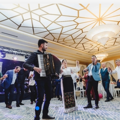 Oferim muzică tradițională românească din toate zonele (hore, sârbe, doine), muzică ușoară live (internațională, grecească, machedonească) și program modern cu DJ (pop, dance, manele, reggaeton). La cerere, putem include și momente speciale precum primirea invitaților cu cvartet, Show cu saxofon sau vioară.