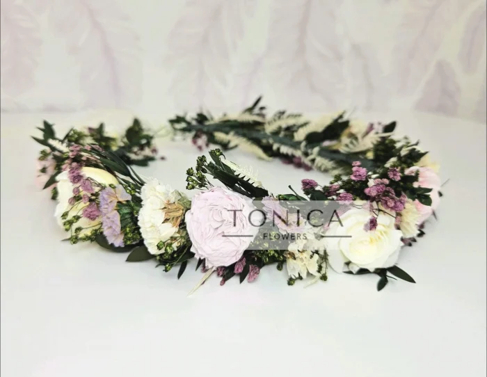 Cromatica si dimensiunile pot fi alease in functie de preferinte. Florile nu necesita ingrijire avand o durata lunga de viata. Aranjamentele sunt unicat si nu pot fi realizate 2 identice 100%. Florile pot diferi in functie de disponibilitatea stocului. Majoritatea produselor de pe site-ul nostru sunt disponibile cu precomanda (in perioada nuntilor si in plin sezon al acestora, comanda se plaseaza cu minim 5 saptamani inainte) Pentru detalii/comenzi ne puteti contacta.