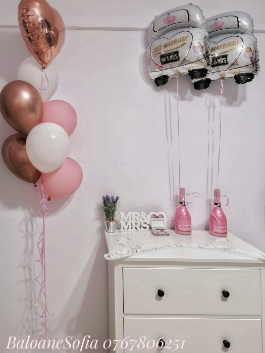 Balonul este din folie de aluminiu, in forma de masinuta de nunta si este o alegere perfecta pentru evenimentul dstra. Acesta are dimensiunea de 60 x 63 cm si prezinta un design elegant, cu textul "Just Married" scris pe auriu, care il face sa iasa in evidenta.