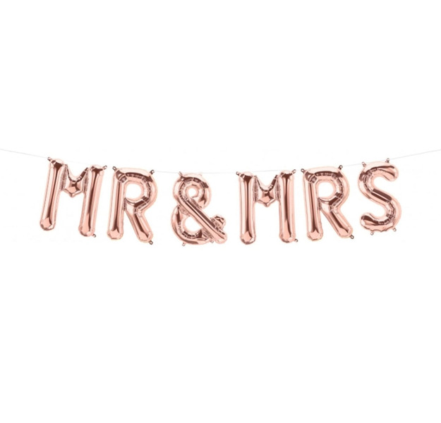 Set baloane folie Mr&Mrs, culoare rose gold.