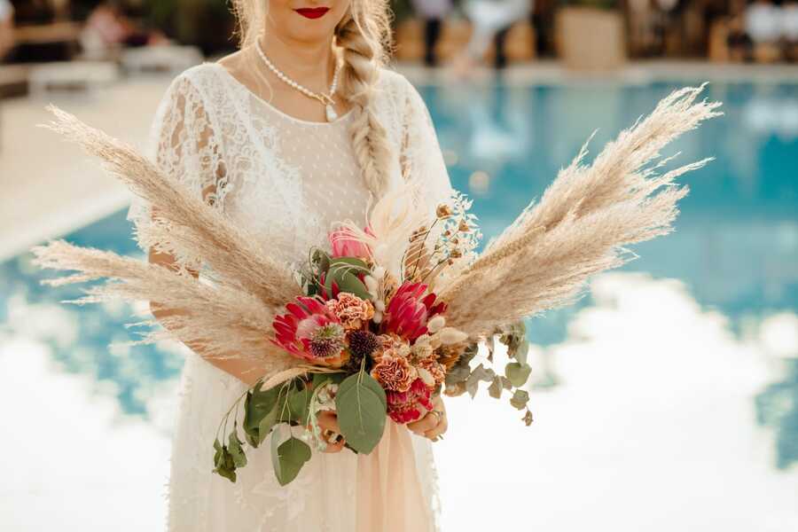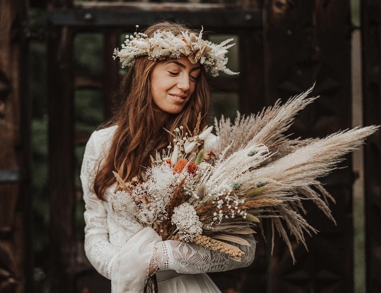 BUCHETE DE MIREASA STIL BOHO CU FLORI NATURALE CONSERVATE, NU SE OFILESC. CULORI NATURALE