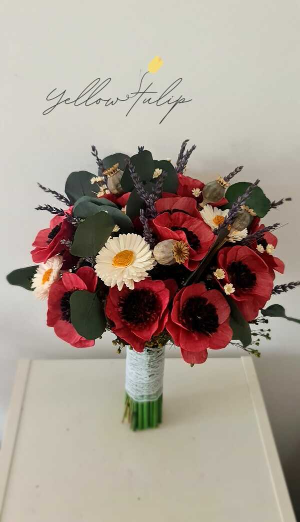 Produsele sunt realizate cu flori din fâșii de lemn de tapioca, care tratate cu o soluție pe bază de glicerină vegetală, capătă finețea și flexibilitatea petalelor naturale de flori iar în combinație cu verdeata naturala stabiliata, acestea nu doar ca vor căpăta un aspect extrem de natural, dar în plus, pot fi păstrate pentru totdeauna!