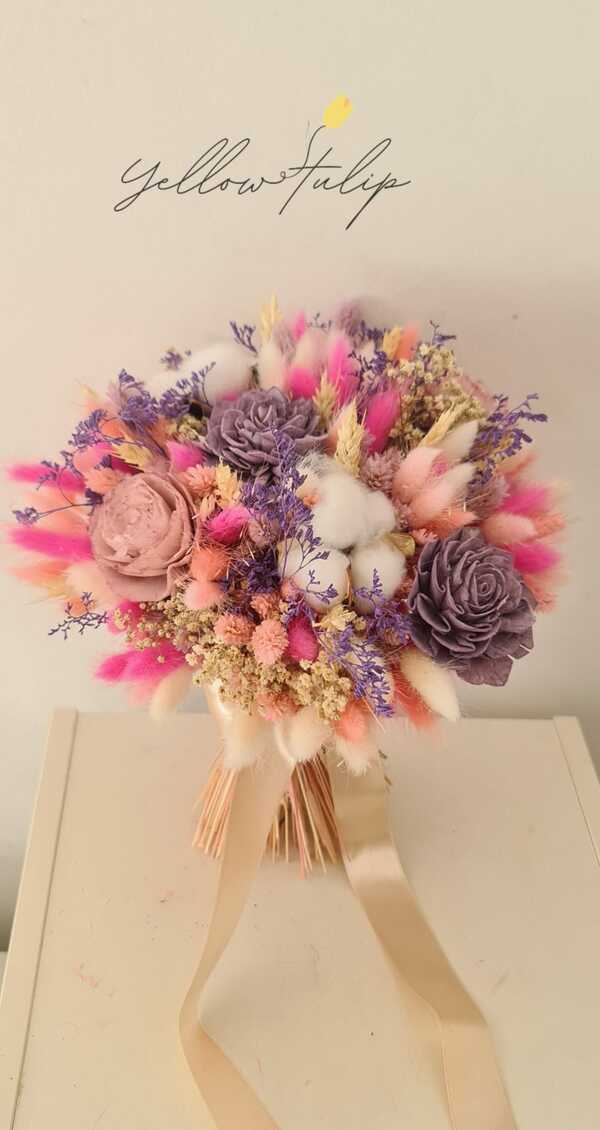 Produsele sunt realizate cu flori din fâșii de lemn de tapioca, care tratate cu o soluție pe bază de glicerină vegetală, capătă finețea și flexibilitatea petalelor naturale de flori iar în combinație cu verdeata naturala stabiliata, acestea nu doar ca vor căpăta un aspect extrem de natural, dar în plus, pot fi păstrate pentru totdeauna!