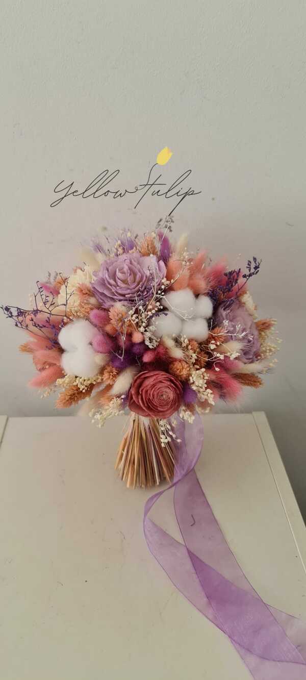 Produsele sunt realizate cu flori din fâșii de lemn de tapioca, care tratate cu o soluție pe bază de glicerină vegetală, capătă finețea și flexibilitatea petalelor naturale de flori iar în combinație cu verdeata naturala stabiliata, acestea nu doar ca vor căpăta un aspect extrem de natural, dar în plus, pot fi păstrate pentru totdeauna!