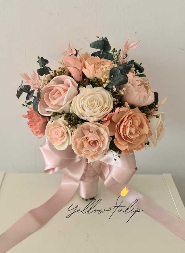 Produsele sunt realizate cu flori din fâșii de lemn de tapioca, care tratate cu o soluție pe bază de glicerină vegetală, capătă finețea și flexibilitatea petalelor naturale de flori iar în combinație cu verdeata naturala stabiliata, acestea nu doar ca vor căpăta un aspect extrem de natural, dar în plus, pot fi păstrate pentru totdeauna!