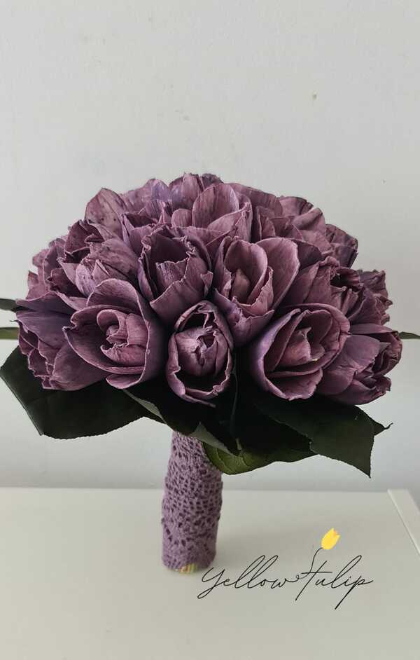 Produsele sunt realizate cu flori din fâșii de lemn de tapioca, care tratate cu o soluție pe bază de glicerină vegetală, capătă finețea și flexibilitatea petalelor naturale de flori iar în combinație cu verdeata naturala stabiliata, acestea nu doar ca vor căpăta un aspect extrem de natural, dar în plus, pot fi păstrate pentru totdeauna!