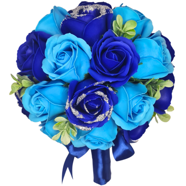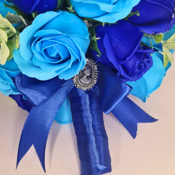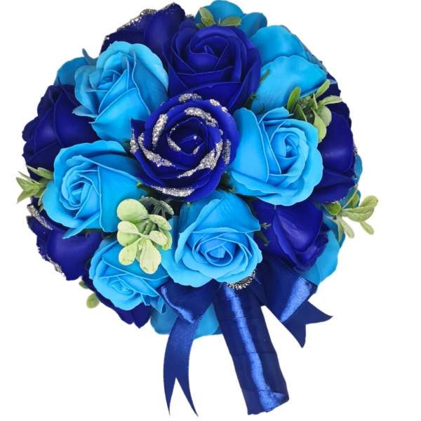 Buchet realizat din 29 trandafiri de sapun, Albastru