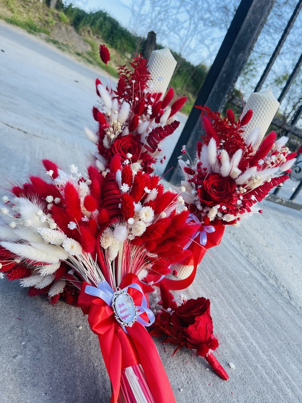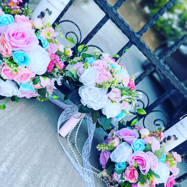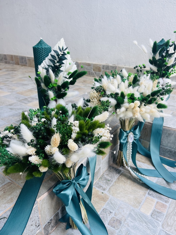 Buchete mireasa/nasa/domnisoara din flori uscate si criogenate, spuma, sapun, panza