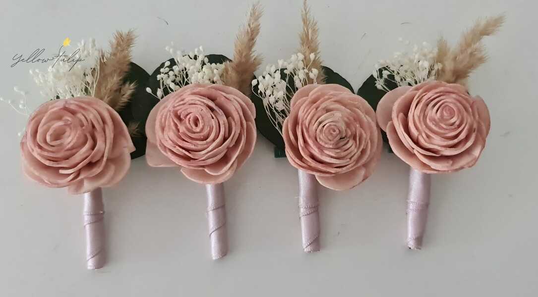 Produsele sunt realizate cu flori din fâșii de lemn de tapioca, care tratate cu o soluție pe bază de glicerină vegetală, capătă finețea și flexibilitatea petalelor naturale de flori iar în combinație cu verdeata naturala stabiliata, acestea nu doar ca vor căpăta un aspect extrem de natural, dar în plus, pot fi păstrate pentru totdeauna!