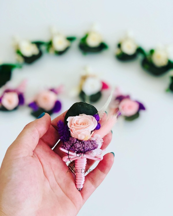 Iată beneficiile alegerii floarei de pus în piept cu trandafir mic criogenat și flori uscate: