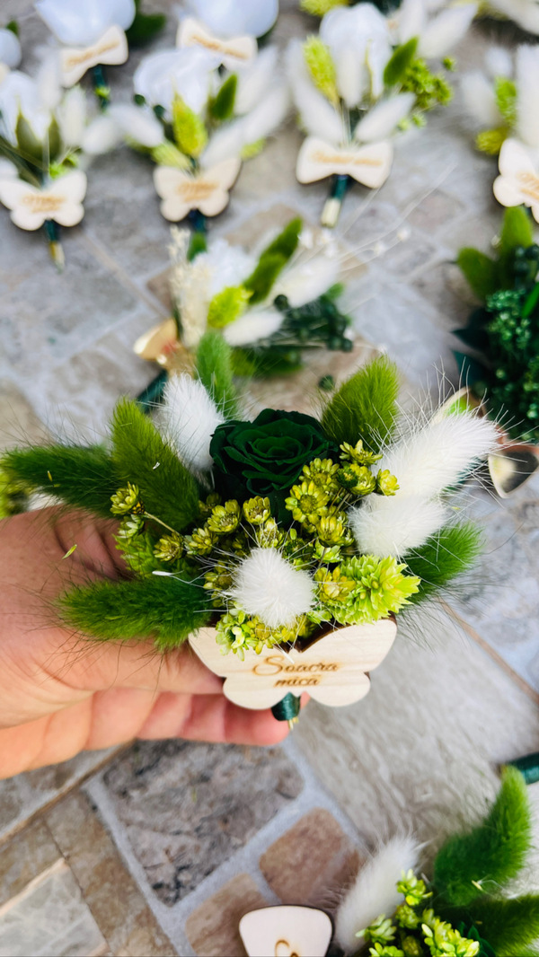 Flori piept si bratari de diferite materiale( sapun, spuma, uscate , criogenate ,panza