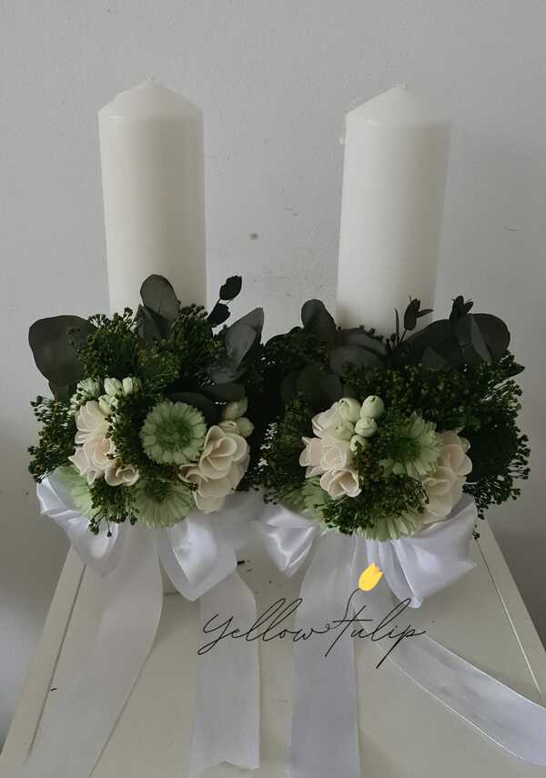 Produsele sunt realizate cu flori din fâșii de lemn de tapioca, care tratate cu o soluție pe bază de glicerină vegetală, capătă finețea și flexibilitatea petalelor naturale de flori iar în combinație cu verdeata naturala stabiliata, acestea nu doar ca vor căpăta un aspect extrem de natural, dar în plus, pot fi păstrate pentru totdeauna!