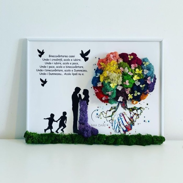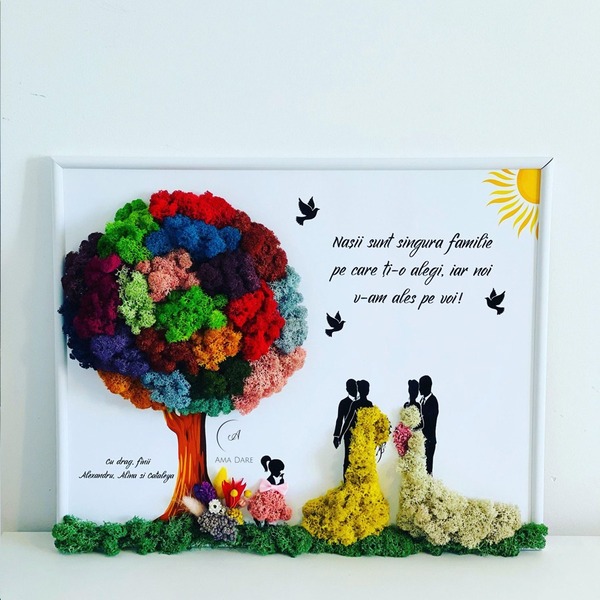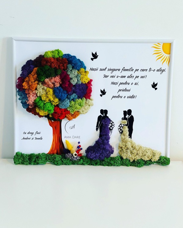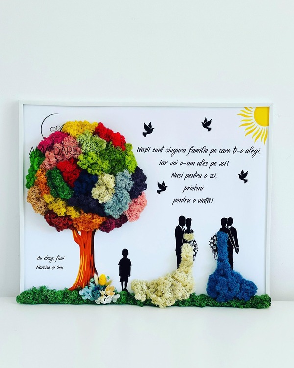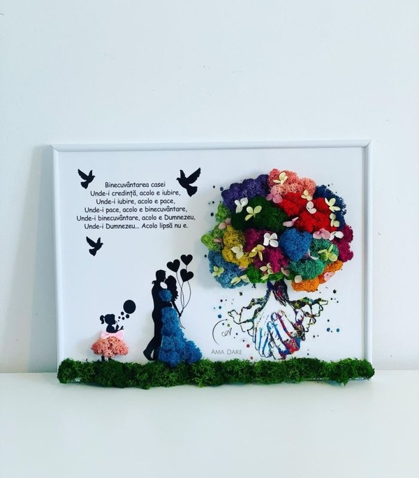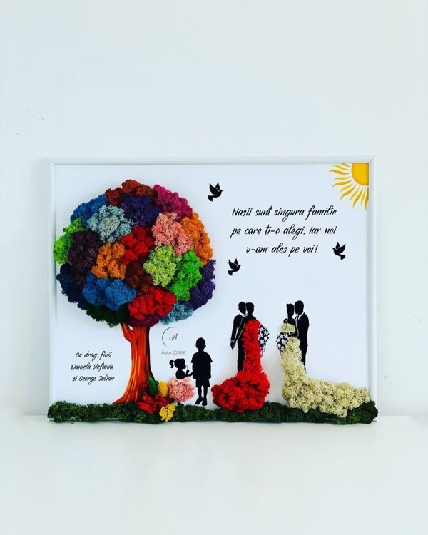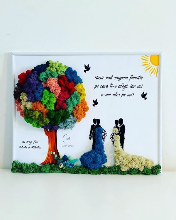 Tablourile personalizate, decorate cu licheni stabilizați și flori uscate pot reprezenta o soluție ideală pentru: