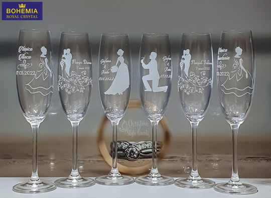 Creați pahare miri și nași de șampanie gravate elegant cu acest design unic din gama noastră, excelent pentru evenimentul dvs.