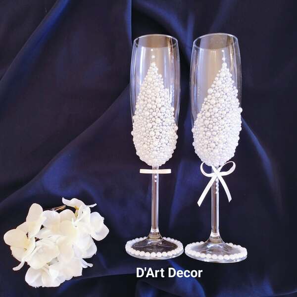 Descoperă paharele de șampanie din cristal cu perle personalizate, perfecte pentru miri și nași. Cu o capacitate de 220 ml, aceste pahare rafinate adaugă un plus de eleganță și un suvenir de neprețuit fiecărui moment special. Livrare gratuita