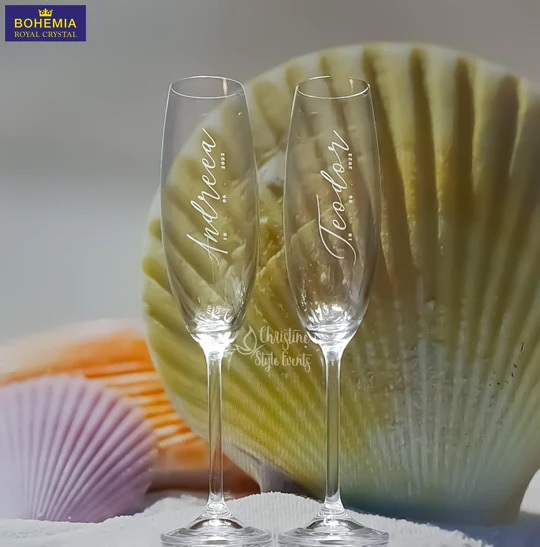 Pahare din cristal elegante personalizate prin gravură.