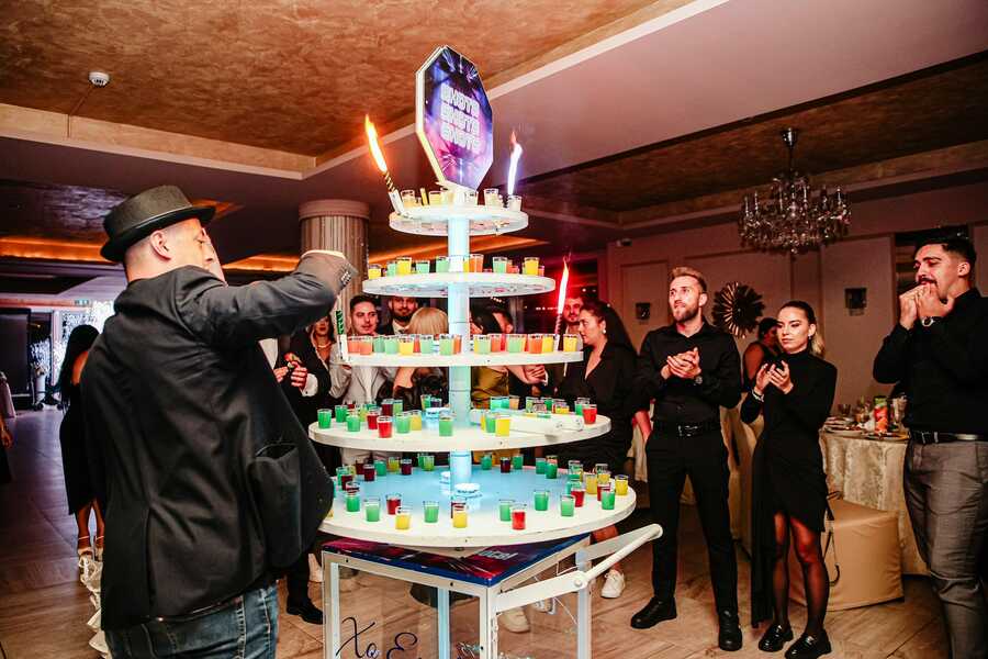 Tortul de shoturi ne distraza, 170 de shoturi , bete luminoase este mai mult decat un moment disco in evenimentul tau